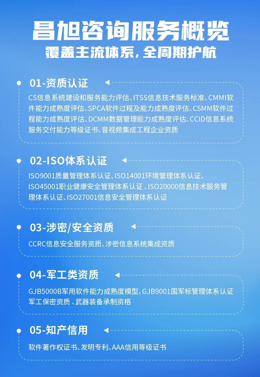 作为一家拥有14年历史的IT认证咨询服务商,昌旭咨询长期专注于信息技术服务行业,提供战略规划、资质认证辅导、管理咨询等专业服务,以深厚的行业知识、丰富的实战经验和服务品质赢得了市场的广泛信赖。